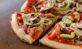 With chef's best secrets. Peppers, onions, olives, ham, pepperoni & meatballs