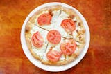 Sliced tomatoes, fresh garlic, mozzarella & basil.